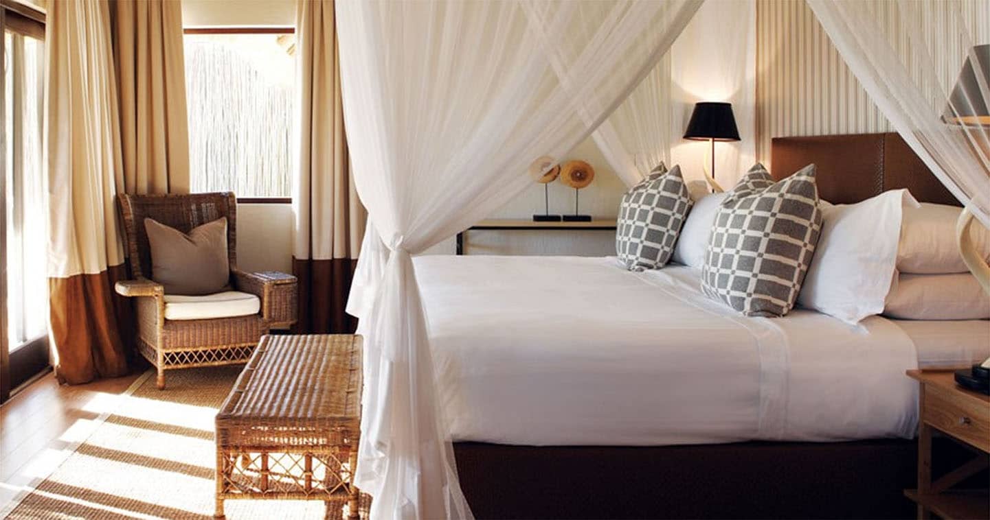 El campamento consta de solo 5 suites rústico-elegantes situadas en plataformas elevadas sobre la sabana ribereña, cerca del río Sand. Cada suite, con techo de lona y decorada en estilo safari clásico, incluye salas de estar privadas, dormitorios acogedores, baños abiertos a la naturaleza y terrazas desde donde se puede observar la vida silvestre ante tus ojos. Por la noche, los sonidos del bush se convierten en parte de tu experiencia.